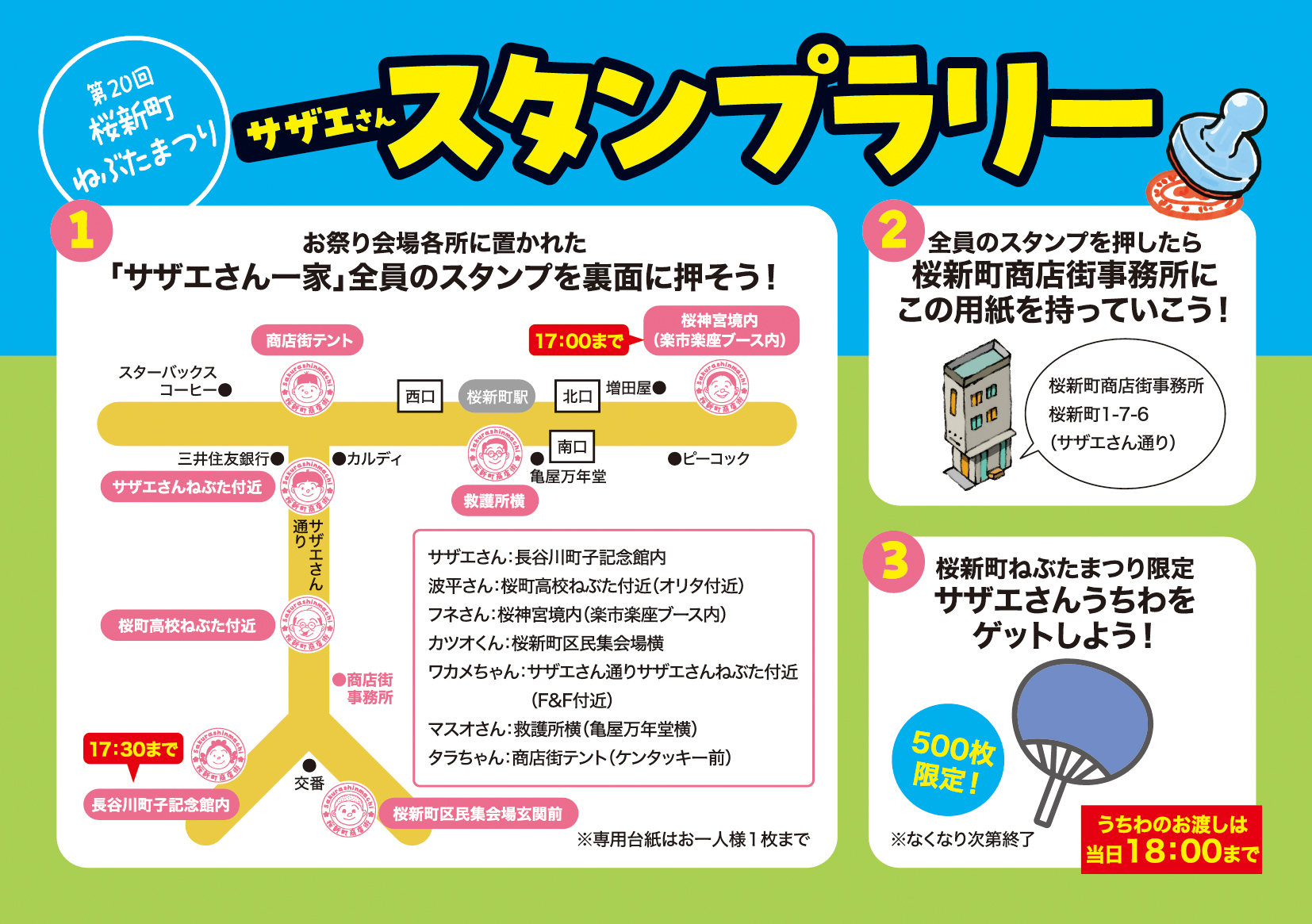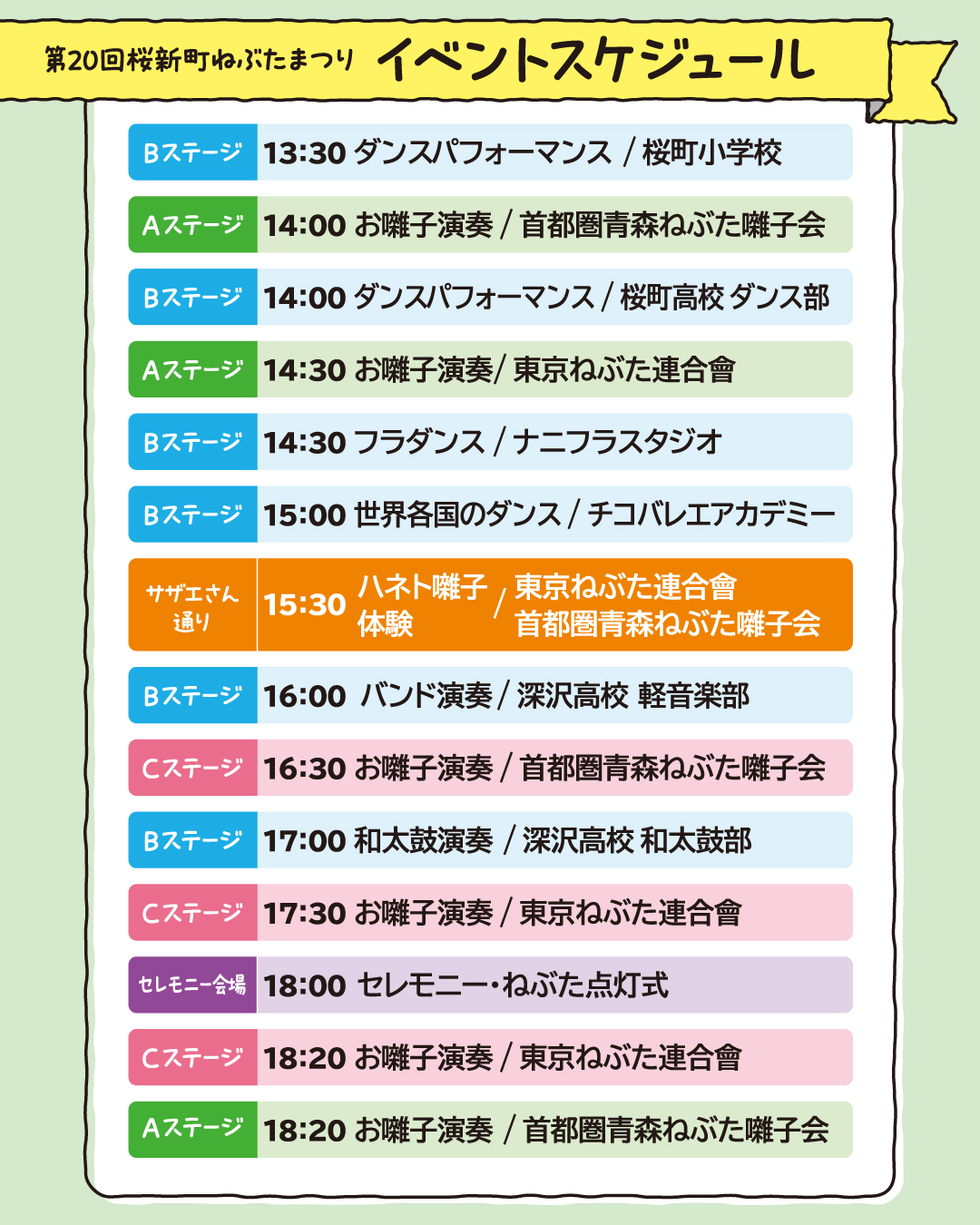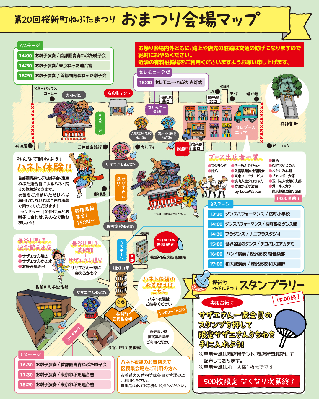 2025年9月20日(土)に開催する「第20回桜新町ねぶたまつり」の会場マップとイベントスケジュールができました。